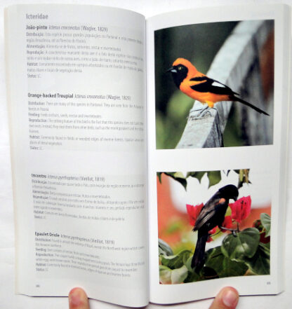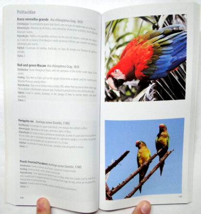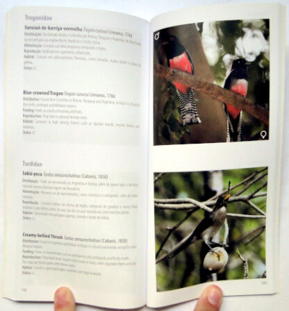 Este guia traz informações a distribuição, alimentação, reprodução, habitat e status de conservação de 155 espécies de aves. O livro encontra-se em ótimo estado de conservação, com leves desgastes nas bordas da capa, sem sinais de uso.