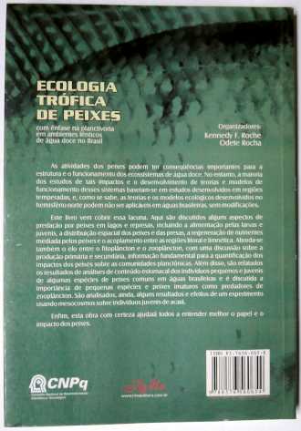 Este livro traz informações sobre: Aspectos de Predação por Peixes em Lagos e Represas, com Enfoque na Planctivoria; Produtividade, Biomassa da Comunidade Planctônica e Suas Implicações na Transferência de Energia na Cadeia alimentar de um Reservatório Raso e Oligotrófico; Dieta de Astyanax bimaculatus, Cheirodon stenodon, Serrasalmus spilopleura e Plagioscion squamosissimus em Duas Represas, com Ênfase no indivíduos juvenis; Impacto do Acará, Geophagus brasiliensis (Cichlidae), no Plâncton da Represa do Broa: Um Experimento Usando Mesocosmos. O livro encontra-se em bom estado de conservação, com leves desgastes na capa, pequena mancha amarela clara de umidade na parte inferior interna da capa frontal e das 4 primeiras páginas, demais páginas em ótimo estado de conservação.