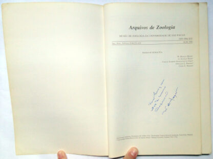 Este livro traz informações sobre a biologia, ecologia, distribuição geográfica e chave de identificação de 65 espécies de anfíbios registradas na Estação Biológica de Boracéia. O livro encontra-se em bom estado de conservação, leves desgastes nas bordas da capa, amarelamento do corte e dedicatória com autógrafo do autor na primeira página.
