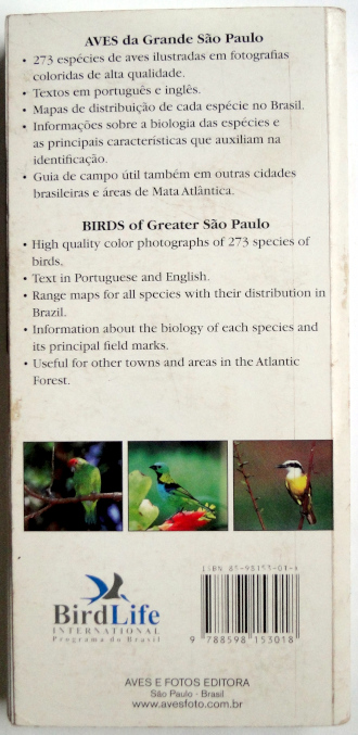 Este guia traz informações sobre a biologia, ecologia e distribuição de 273 espécies de aves. O livro encontra-se em bom estado de conservação com desgastes de uso na capa, primeira página com manchas amarelas de oxidação e páginas em bom estado de conservação.