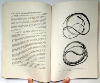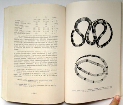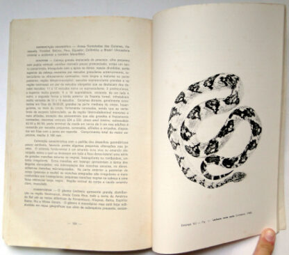 Este livro traz informações sobre: Métodos de estudo; Notas sobre o meio ambiente da região; Notas Zoogográficas e Ecológicas; Notas sobre a taxonomia, distribuição geográfica, diagnose e observações de 80 espécies de serpentes. O livro encontra-se em bom estado de conservação, com desgastes na capa, pequeno corte na parte inferior da lombada, pontos de oxidação no corte e leve amarelamento das páginas.