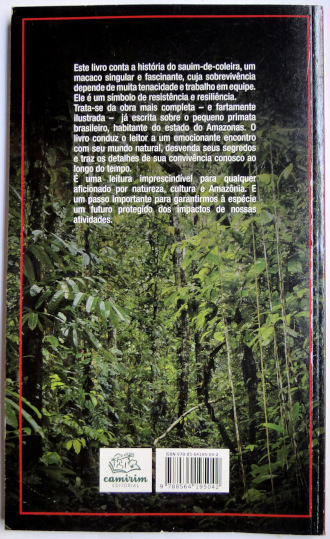 Este livro traz informações sobre: O Sauim; A origem do nome; A descoberta da espécie; O Caminho da evolução; Classificação zoológica; Distribuição e habitat; Comportamento; Ecologia; Conservação; Símbolos de simpatia; A importância da espécie. O livro encontra-se em bom estado de conservação com leves desgastes nas bordas da capa e dedicatória dos autores na primeira página.