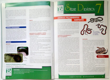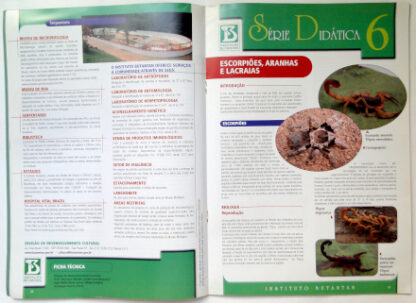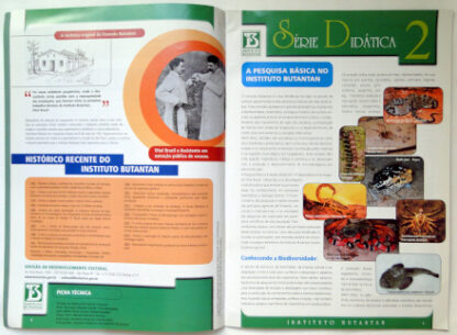 Este livro traz informações sobre: Vital Brazil e o Instituto Butantan, um breve histórico; A Pesquisa Básica no Instituto Butantan; Soros e Vacinas; Biotecnologia no Instituto Butantan; Educação e Cultura no Instituto Butantan; Escorpiões, Aranhas e Lacraias; Serpentes; Taturanas; Anfíbios; Acidentes com Animais Peçonhentos; Animais de Biotério no Instituto Butantan. O livro encontra-se em bom estado de conservação, com leves desgastes nas bordas da capa, carimbo de biblioteca na primeira página e no verso da capa traseira.
