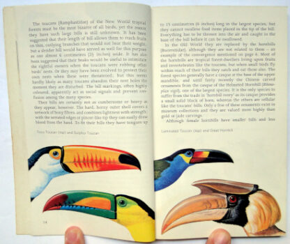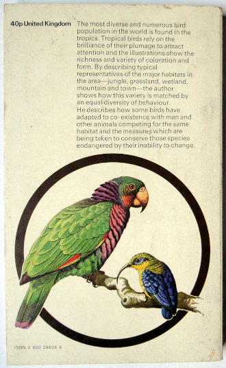 Este livro traz informações sobre as aves de florestas de várzea, campos, rios, lagos e pântanos, montanhas, ilhas tropicais, Borneo, Galápagos, Nova Guiné, Oeste da Índia, Filipinas, Oceano Indico, cidades, lavouras, visitantes dos trópicos, aves tropicais e o homem, aves tropicais e outros animais, aves em perigo. Livro em bom estado de conservação, com desgastes na capa, resquícios de etiqueta removida no verso da capa dianteira e leve amarelamento das páginas, devido a ação do tempo.